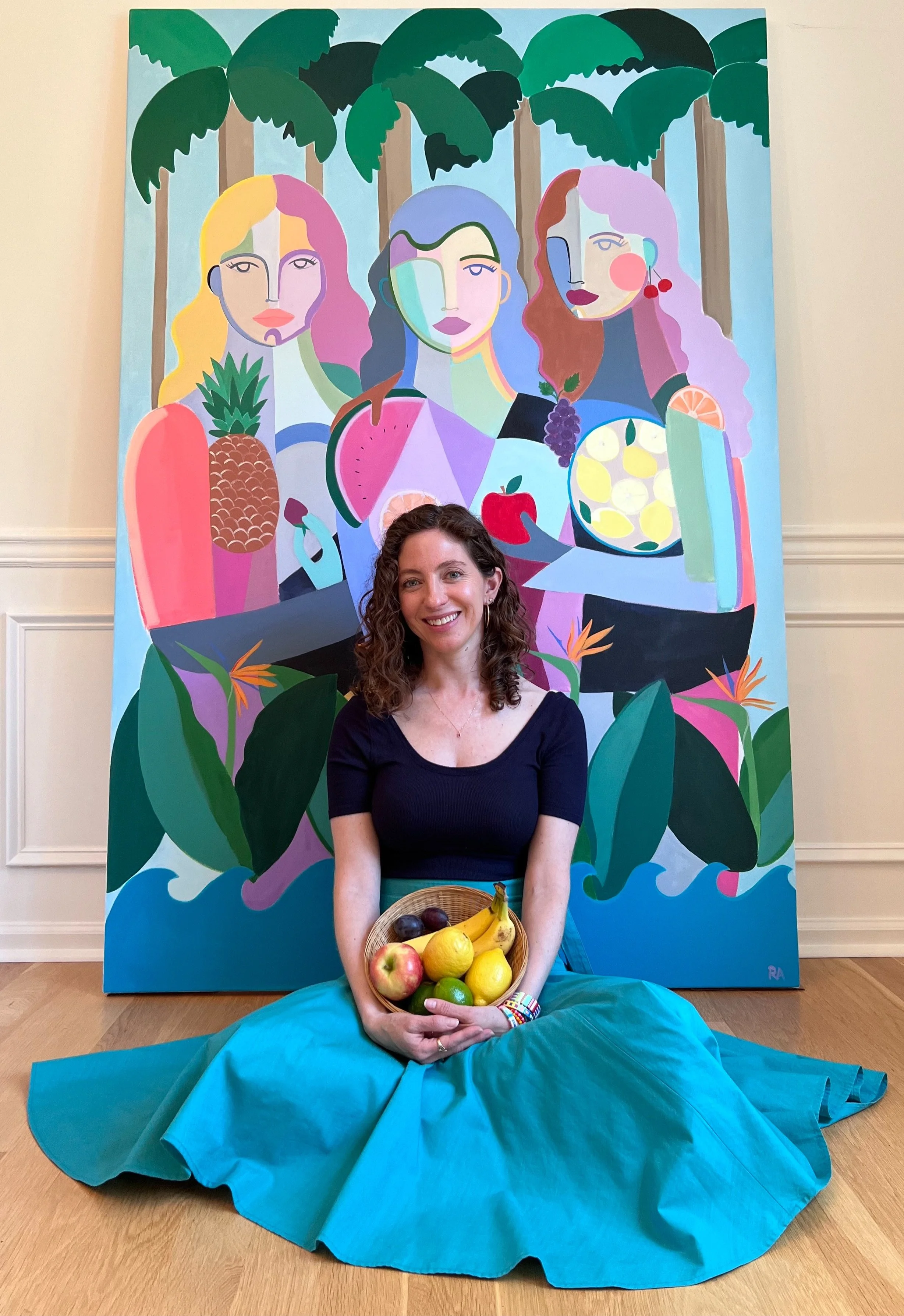 I love the way color can transform a body, an outfit, a mood, a room. Which is why I'm drawn to painting the female form—the lines and curves, bends and angles—in bold shapes and saturated hues. A swathe of indigo; a splash of chartreuse; a block of fuchsia; puzzling out the perfect palette makes my heart sing and continues to bring me back to my easel. When I'm not painting figures and faces, you can find florals, abstracts and more popping up in my home studio outside of Philadelphia.